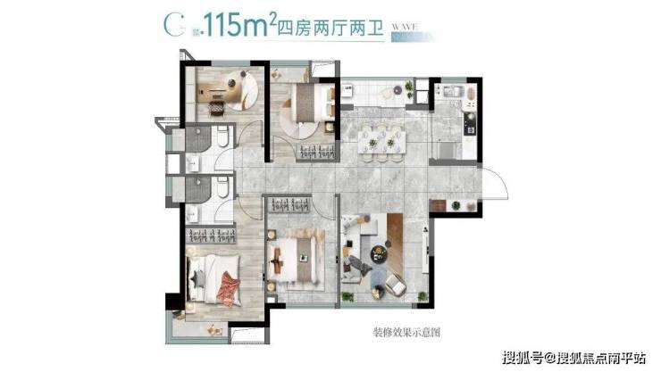 115平4房2卫,边套户型,动静分离,南北通透