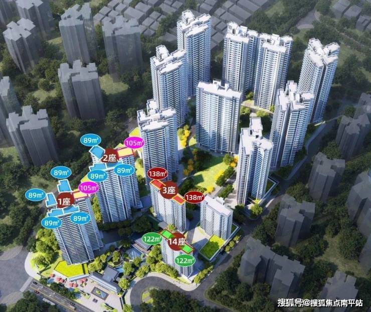 其中,1座为2梯5户,30层高,户型为89㎡三房及105㎡四房;
