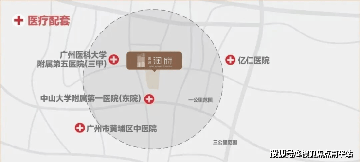 医疗:500米内中山一院(三甲),1.2公里广医五院(三甲),辅以二甲医院。