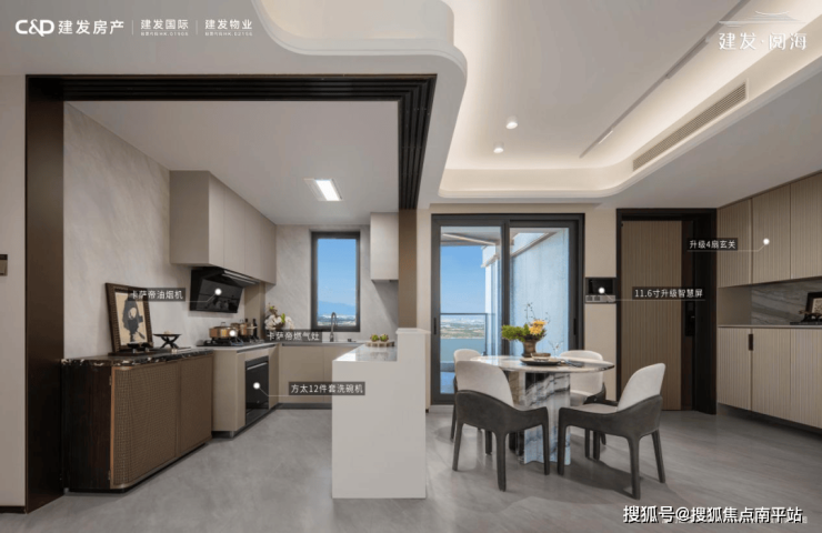 室内高配一线品牌家电与名贵奢材,方太12件套洗碗机、卡萨帝油烟机、卡萨帝燃气灶等,引领人居标准。