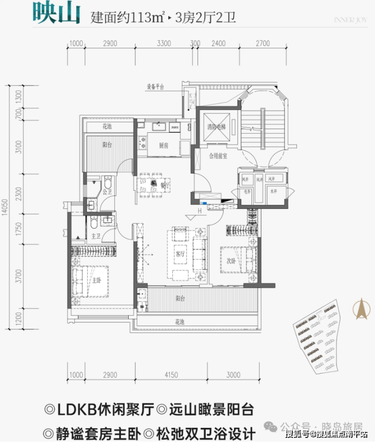113-143㎡三房至四房、板楼设计、独立入户电梯间、超高得房率