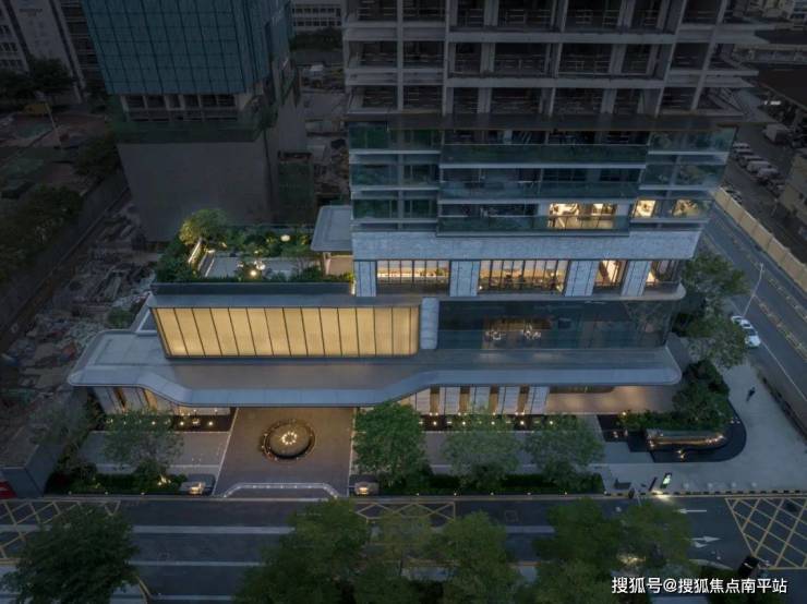 酒店式社区大堂:朝向广场,入口前场、门廊、大堂、内庭院、单元大堂组成的归家动线,配合建筑、景观、室内、标识、灯光一体化设计,汲取糅合后的南洋文化元素细节,把酒店式归家仪式感拉满,彰显非凡气度。