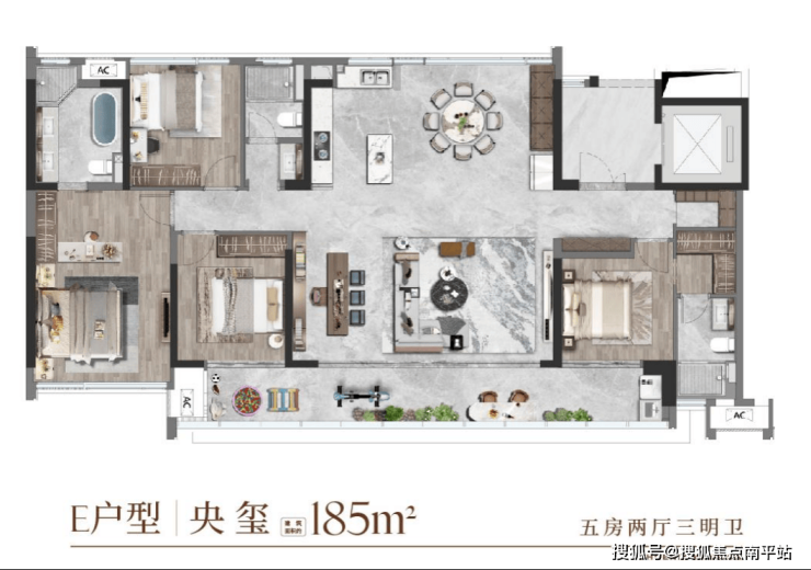 【建面约185㎡户型】尺度再升级,堪称塔尖圈层专属。一梯一户搭配约7.6㎡专属前厅,入户即启圈层专属礼遇;约58㎡巨幕横厅衔接全景玻璃幕墙,搭配约13.5米南向环幕观景阳台,可打造私享茶室、星空观景台,俯瞰约5000㎡中央花园与下沉庭院盛景。