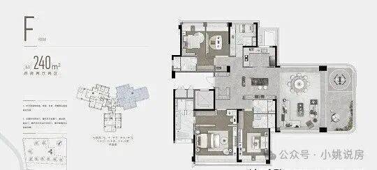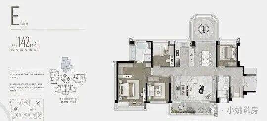 主打 88-240㎡三至五房全维户型,刚需、改善、顶奢需求全满足,得房率超 100%,空间性价比直接封神!88㎡三房做到 5.6 米大横厅,全赠送超大空中露台,刚需优选超划算;115㎡3+1 房带专属无人机停机坪,10 米空中花园阳台,成长型家庭适配度拉满;125㎡四房南北双阳台,收纳空间提升 40%,完美适配三代同堂;142㎡四房双台盆主卧 + LDKG 一体化设计,通透感拉满;240㎡顶奢五房坐拥 9 米挑高空中墅院,270° 环幕山海景观,四套房设计尽显塔尖格调。所有户型均为全南布局,部分层高 3.2 米超普通住宅,还赠送 18-30㎡空中花园,把花园搬上空中小家!