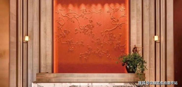 取春天清风徐来、水波不兴的意象,以“广绣隐现、幕墙灵动”为设计概念,打造泗水归堂空间入口照壁屏风,彰显归家尊贵感与品质。
