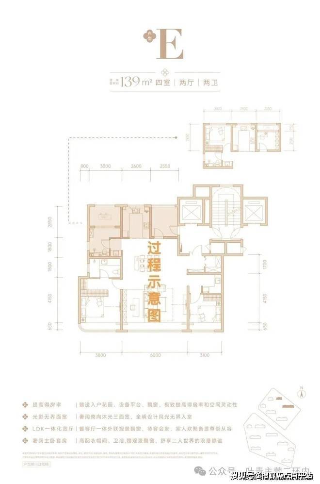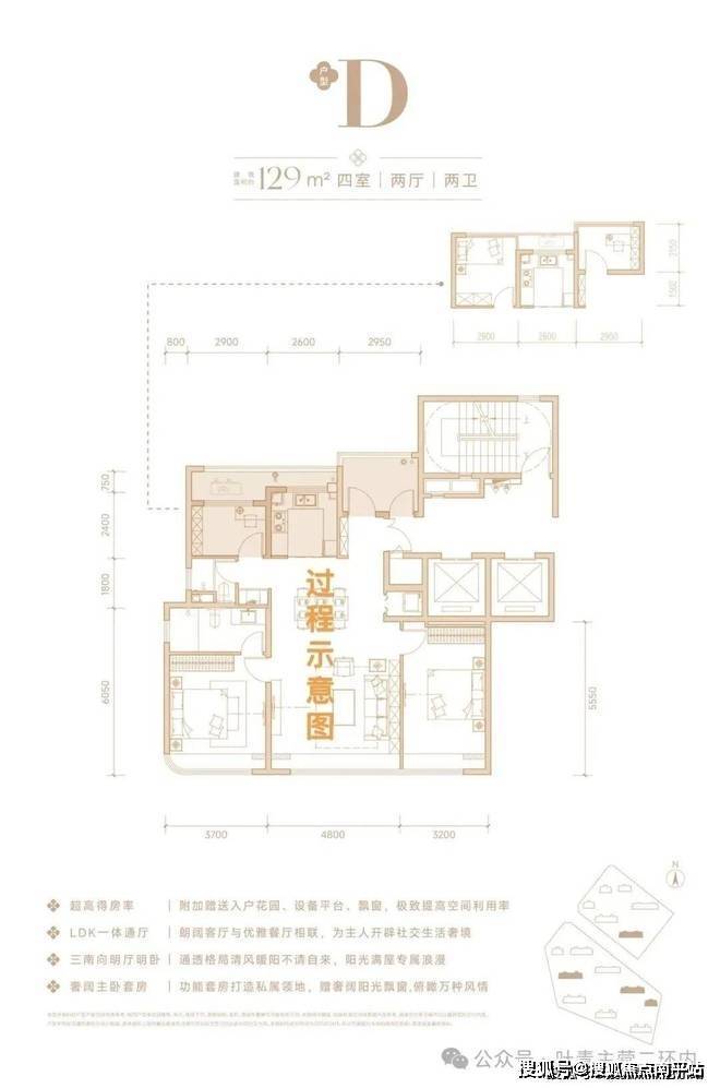 - 建面125㎡四叶草户型:南北通透,四开间朝南,主卧套房含独立衣帽间和卫浴,北向书房可改造为儿童房或家政间。