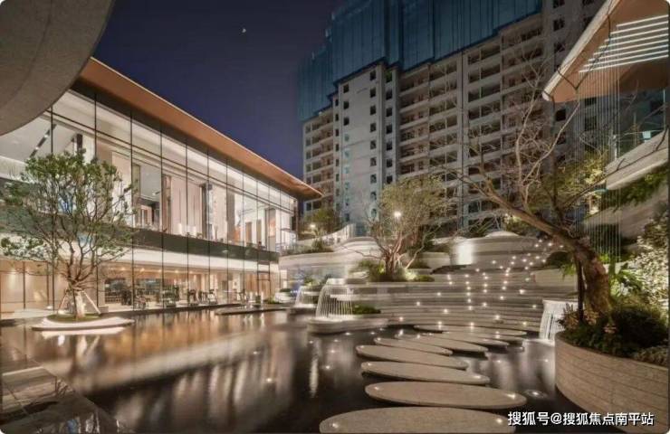 会所园林由知名景观设计院怡境国际打造,参照泰国顶奢四季酒店风格,设计约500㎡浮岛式下沉庭院,移步换景的园林景色,步入其中充满了轻松与宁静的氛围,酒店度假感油然而生。