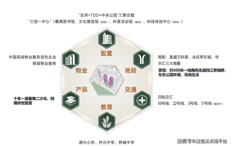 ◎ 尊踞区府正脉,直线距离番禺区政府约200米,坐享广州中轴上仅有的“区府+TOD+中央公园”三引擎合璧的超级中芯。税务局、检察院、财政局、教育局等行政机构环立,凝聚一城高端圈层