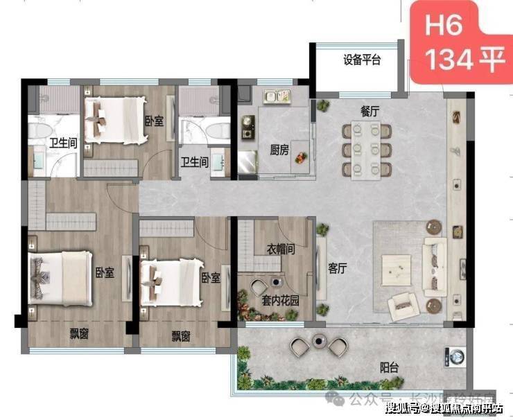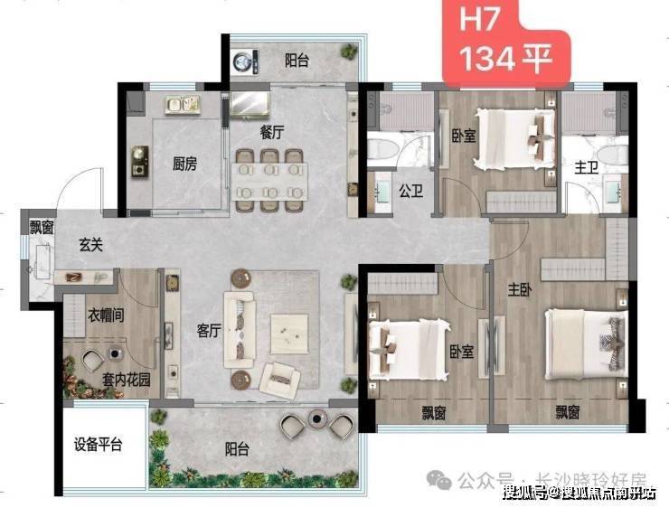 建面约134㎡户型,一步到位,适合多代同堂家庭。