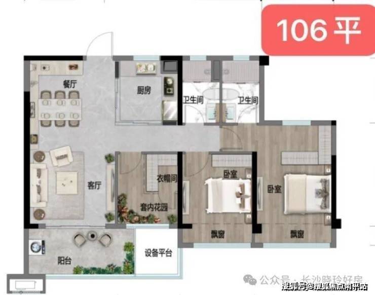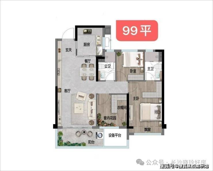 建面约99-106㎡户型,门槛最低,也是项目的年度爆品。