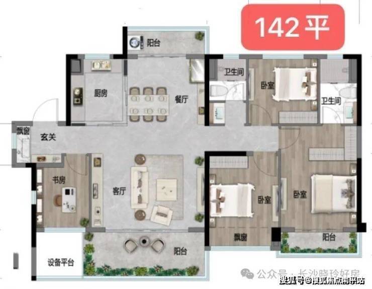 建面约142㎡户型,一步到位,适合多代同堂家庭。