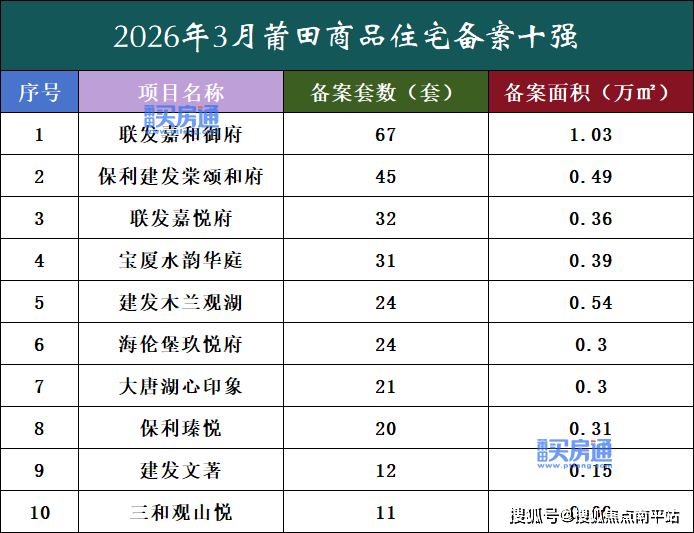 3月莆田住宅备案TOP10出炉!这个信号很关键了
