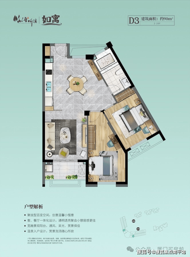 3、户户原脉偏硅酸温泉入户,赏景泡汤随心所欲