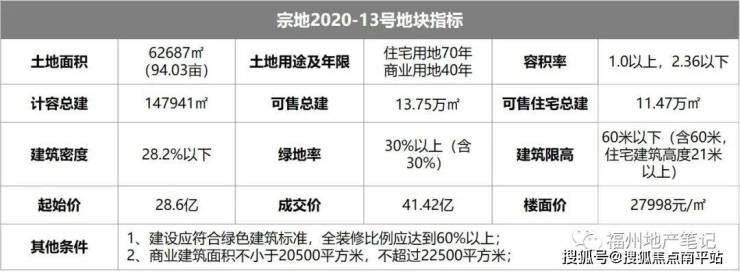 2020年4月15日,福州市区举行第二场土拍,宗地2020-13号地块关注度高,共9家房企参与竞拍,最终经过54轮,保利以最高限价41.42亿元摇号竞得,楼面价27998元/㎡,溢价率45%。