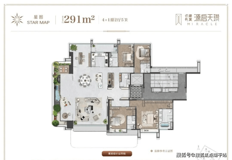 保利建发·源启天瓒291㎡户型过程稿效果图,以实际交付为准