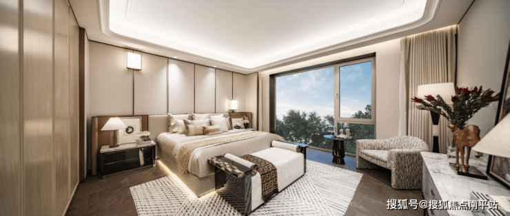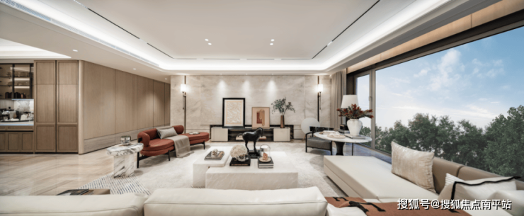 一幅推门可见的巨幕窗景,究竟有多难得?得益于项目团队对住宅窗墙比、窗地比的极致追求,梅江壹号院二期采用了业内罕见与地面齐平的的全景落地窗设计。当普通落地窗甩掉150mm的“画框”,原先存在于视野下方的截断感消失了,取而代之的,是无限延伸、完全沉浸的MAX级视觉体验。