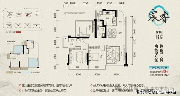 建面约80㎡功能齐全玲珑三房 (可拓展面积约18㎡