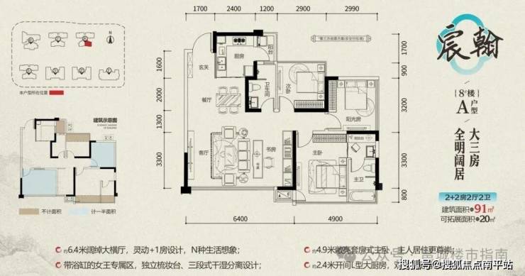 建面约91㎡全明阔居大三房 (可拓展面积约20㎡