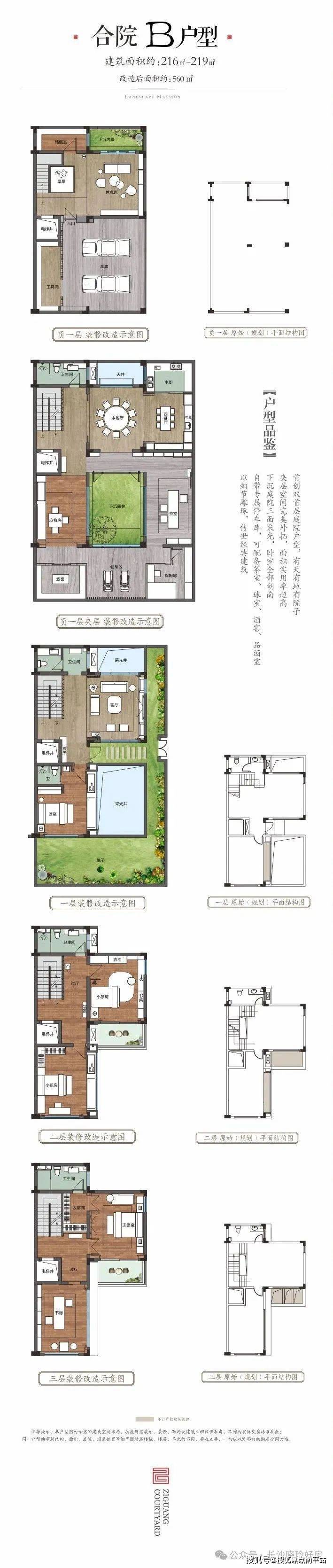 ②B户型买219㎡改造后实用560㎡带90㎡庭院