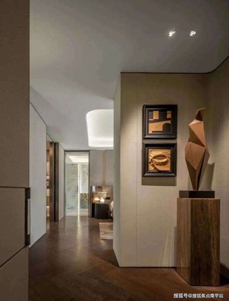 玄关与过厅之间的连接与穿梭,邀请人们对其探索与驻留,开门即可感受温暖舒适尊贵的归家体验。午后归家一刻,邂逅精致艺术寓所,即刻上映艺术与静谧的对话。