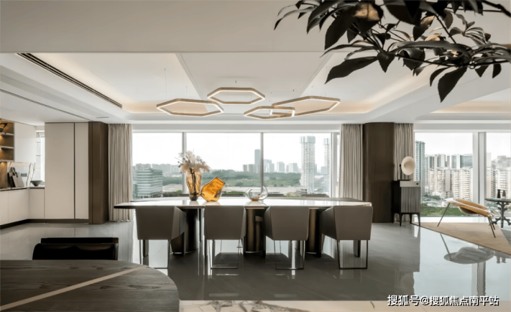 将艺术融入空间,赋予空间灵感。餐厅是一个家庭聚集和延续情感的地方。为空间融入多元化的功能演绎,将其打造为集社交、美食品鉴、艺术交流的多元灵感圣地。家具简约大方,窗外的城市景色为空间增添了美学氛围,让居住者感受到无限的生活向往。