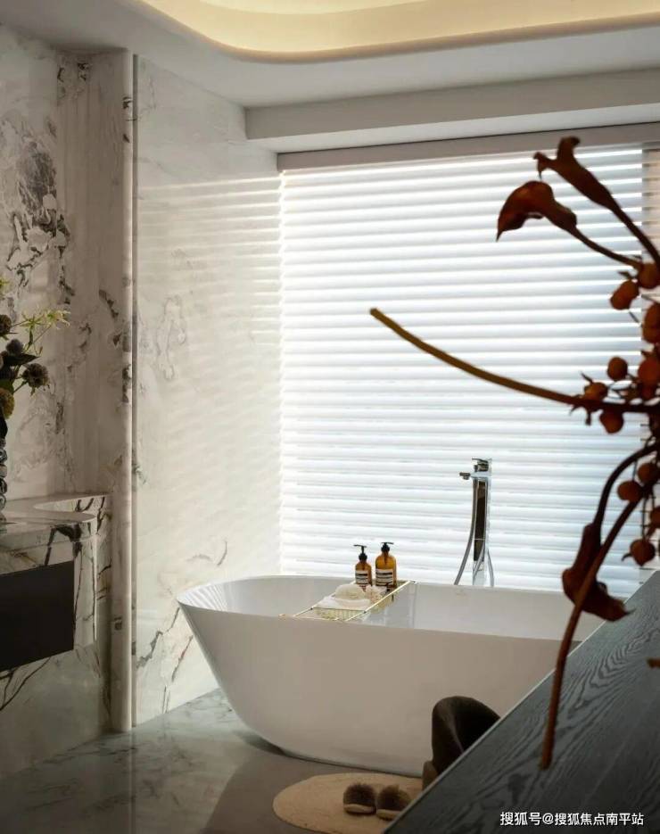 超宽浴室搭配全景窗台,可以欣赏到东莞CBD中央公园的美景,以充满仪式感和私密性的设计,让沐浴变成一次洗涤身心的奢华之旅。