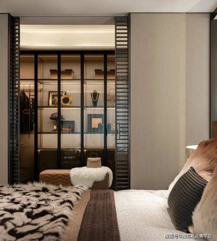 步入式衣帽间,通过线条感的设计打造出流动的空间体验,精致的细节质感将空间的奢华氛围淋漓展现,打造出由内而外的雅奢生活范本。