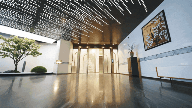 超18米的雅奢入口、7米酒店式挑高入户,搭配门前的艺术雕塑,给人以视觉的强烈冲击。