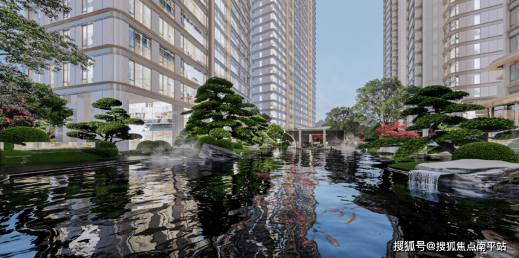约8.6米高罗汉松、树王级紫薇、约11米高金丝楠木林,约4.5米高金弹子,约1200㎡的进口米级锦鲤池,重构当代玺园。