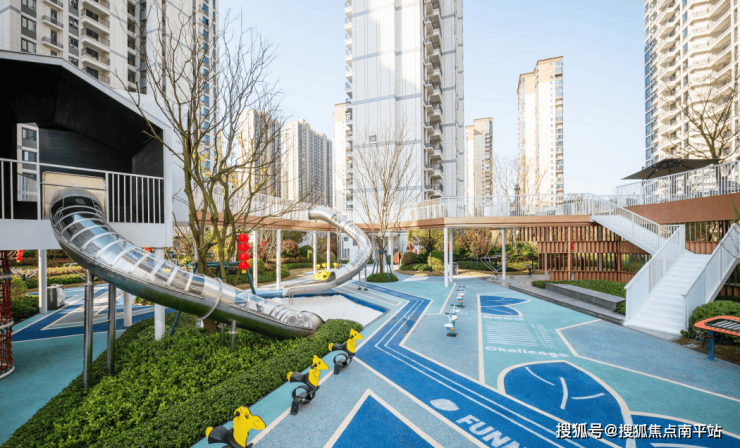长沙北中心·保利时代自建双市政公园,北侧约2.2万方活力公园部分实景已建成,涵盖滑板广场、篮球场、儿童游乐场等全龄游乐设施。