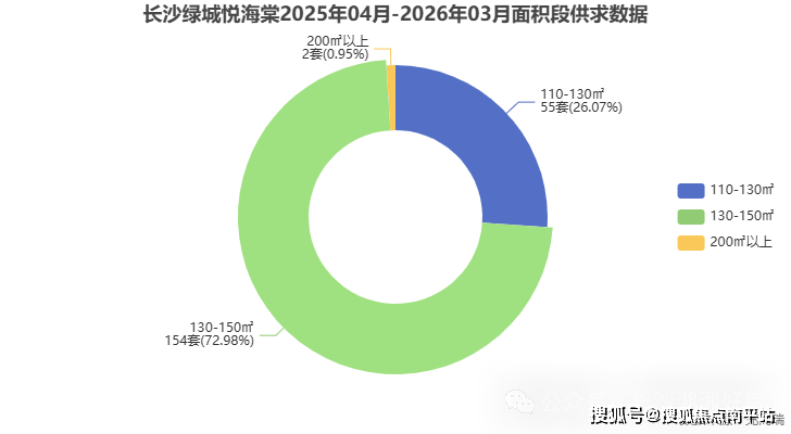 数据解读:从克而瑞数据来看,130-150㎡面积段成交占比最高(约 73%),说明 138㎡户型是主力成交产品。110-130㎡占比约 26%,适合预算有限的改善家庭。整体来看,项目精准匹配了改善客群对空间的需求。