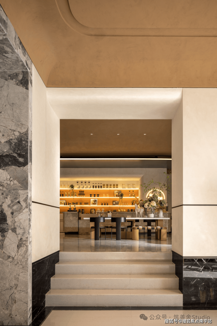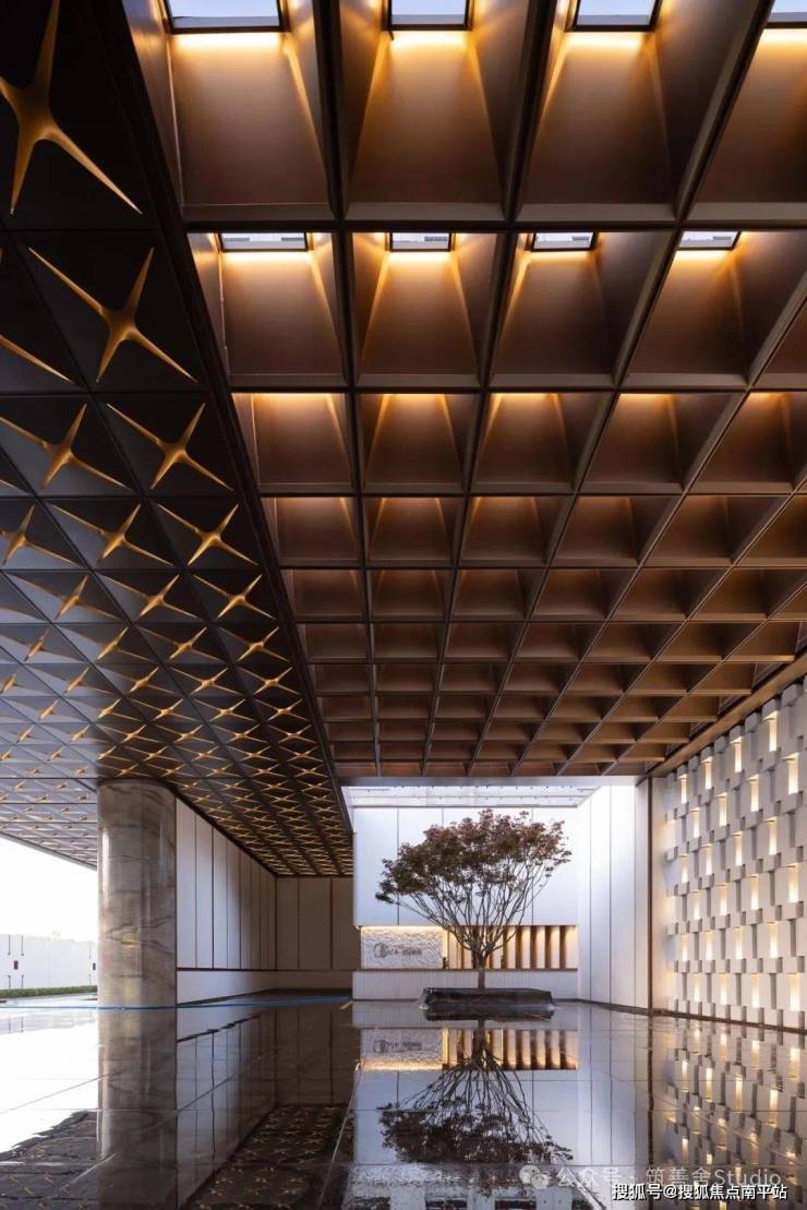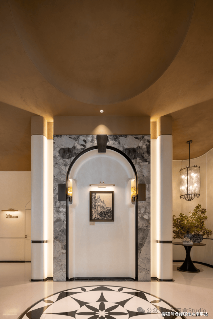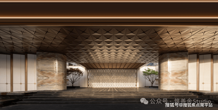 吊顶板设计灵感源自海棠花,密拼铝板中嵌入点状星光,光与影的交织展现出功能与艺术的完美融合。入口处精选豪华奢石,以其独特的纹理和温润质感,为归家者打造一段专属的记忆。正如叶片依赖根茎枝干得以绽放,西棠和煦Ⅲ正是对自我价值的一次深刻探索与展现。