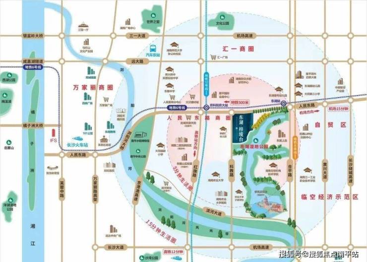 项目位于芙蓉区人民路与科教路交汇处东南角,人民东路以南、科教路以东,紧挨着800亩东湖湿地公园,距离地铁6号线农科院农大站约700米。