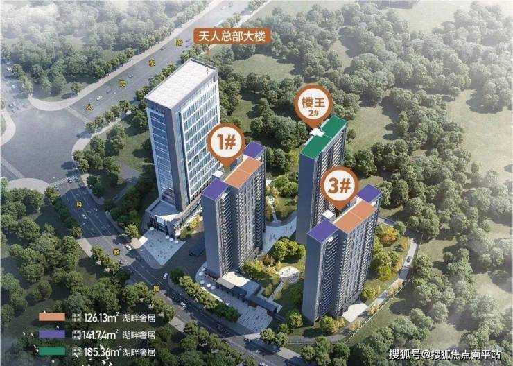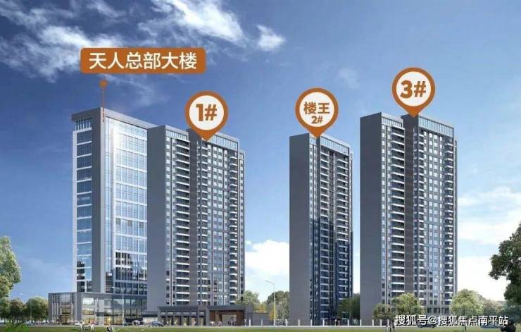 项目建筑风格为新中式风格,即继承了传统中式文化之精华,又体现出了超现代感的设计。共规划4栋建筑,包括1栋天人总部大楼和3栋纯板式高层住宅,其中2#为楼王栋,高26层,1#和3#高25层。