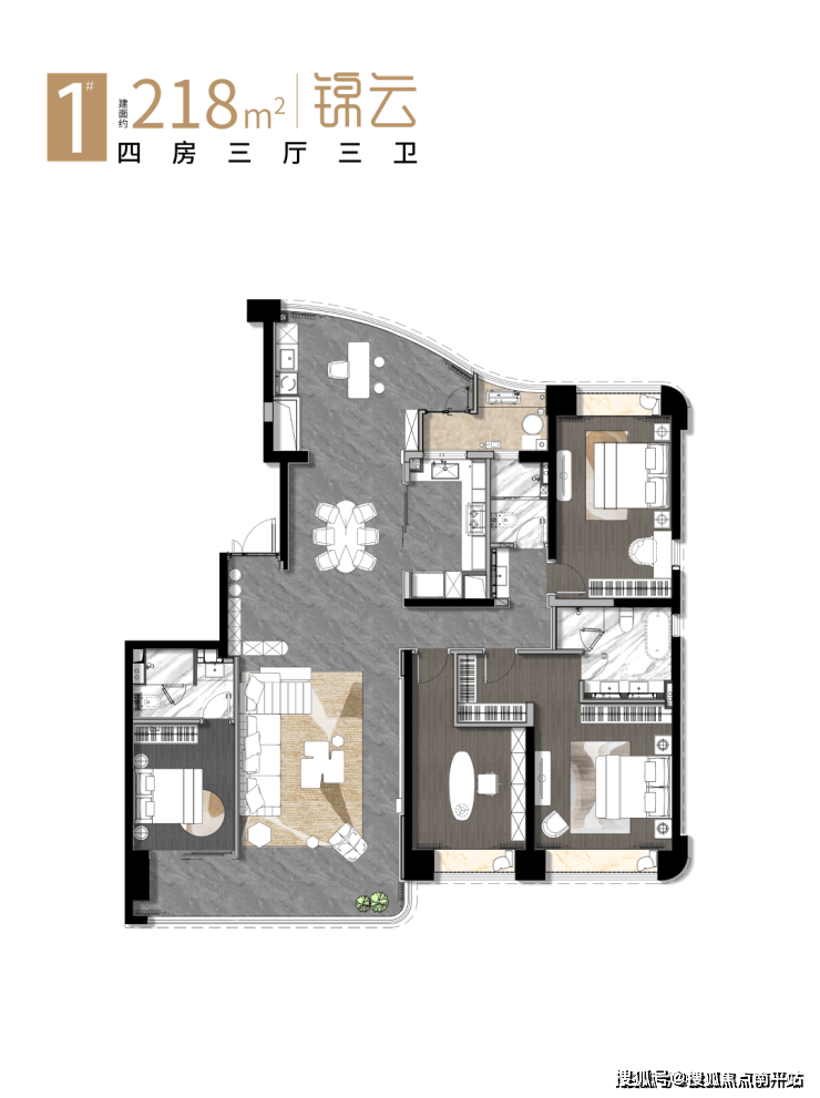 ⭐ 1#栋【锦云】建面约 218㎡户型
