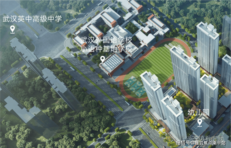 武汉国际教育芯 十五年升学无界化:自建幼儿园,代建九年一贯制武汉外国语学校小语种基地学校(在建),毗邻武汉英中高级中学(在建),形成幼小初高“15年零断档国际教育聚集区”,家门口的国际教育升学通道。