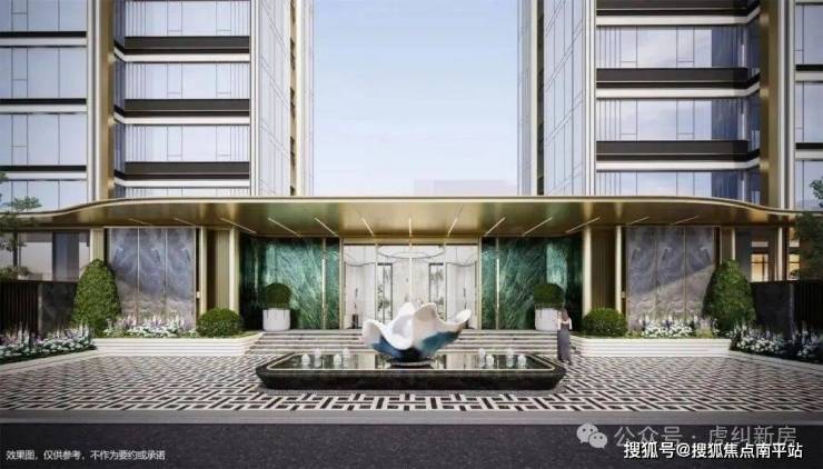 从城央喧嚣回归静谧府邸时,将会先看到是转角处极具辨识度和品质感的定制景墙和金镶玉LOGO。