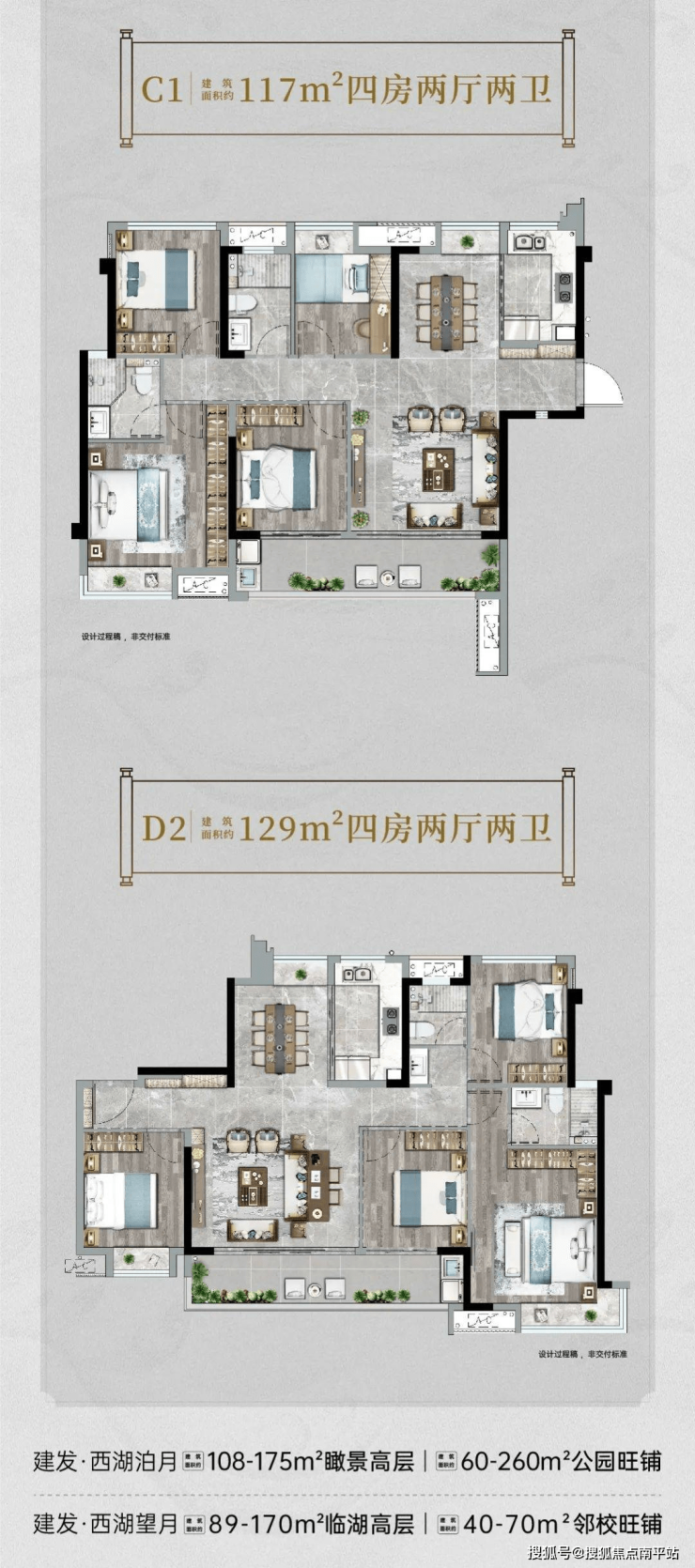 户型上,项目主推建面约89-174㎡三至四房临湖高层,目前户型图与样板房均已经公开。