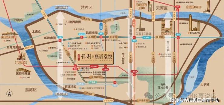 项目位于海珠区工业大道中的燕岗地铁站旁,地铁上盖项目(11号线+广佛线),坐落于工业大道中,背靠珠江后航道,傲立于海珠新活力文商旅融合圈与广州市"首个"后航道服务型制造创新带交汇的核心地带,海珠后航道将成为海珠未来唯一连片开发的豪宅板块。