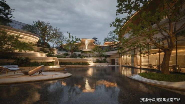 浮岛森林式下沉庭院:以叠瀑、台地造景,形成“山下有院”的立体山水;负一层的全景观瀑会所围绕着下沉庭院展开,多层级的景观渗透,将多元化的生活场景扎根进森林的呼吸中。