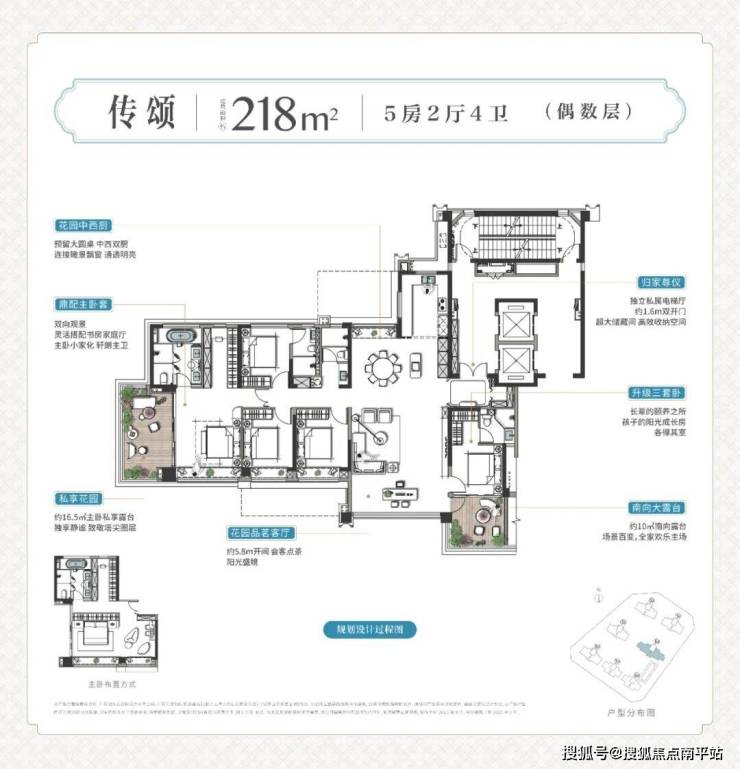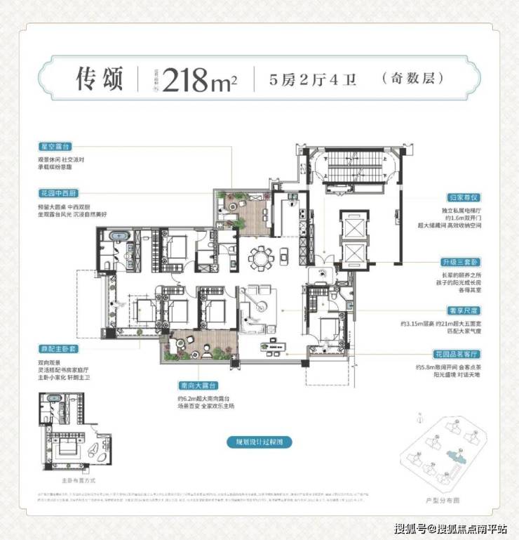 建面约218㎡户型以五房四卫+双露台+独立电梯厅的配置,展现出对多代共居生活场景的深度洞察。该户型不仅延续了建发“风雅宋韵”系的美学基因,更通过空间效率与生活场景的精准适配,成为东海CAZ板块中极具产品力的代表之作。