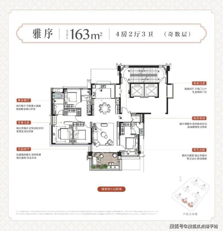 海阅的产品设计基于大量客研反馈,精准回应精英家庭真实生活场景,建面约163-218㎡户型,全面考量多孩家庭、居家办公、圈层宴请等需求,强调空间灵活性与实用性。