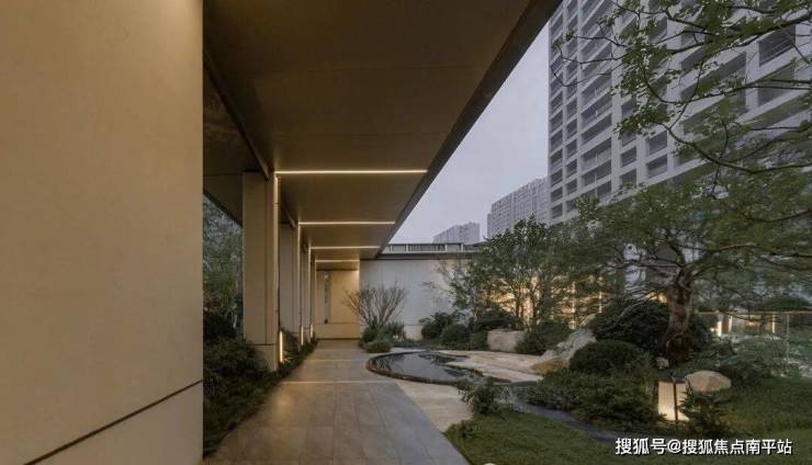 景观设计双轴·六境·一光庭的空间秩序,超140米自然隐萃归家景观轴,织就可居住可游赏的归家景观流线。木脉之境以神木为引、镜水为照,营造天光倒影的震撼视觉;光曜之境致敬路易斯康与安藤忠雄的光影美学;森栖之境以五重场景打造归心森林。长达20米的超长悬挑叠水与13米高的光影悬亭,共同致敬经典美学,赋予空间强烈的仪式感,呈现极萃艺术之美。整个场域通过“视线穿透、三重爆点”的布局手法,最终构筑出空间递进的灵感之美,自然、建筑与人松弛共生。