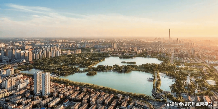 💠天塔湖⽣态公园-市中心地标湖景:天津市区中芯地带最⼤的⼈⼯湖,约6000m²喷泉广场、约3000m²紫金广场与地标天塔共塑独特休闲地标;