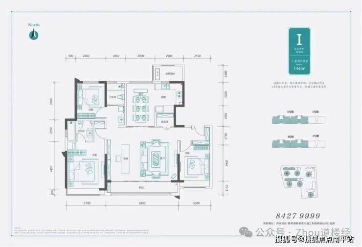 4号楼143㎡三室两厅两卫,宽庭落地窗开间6.8米,一梯两户9层到顶