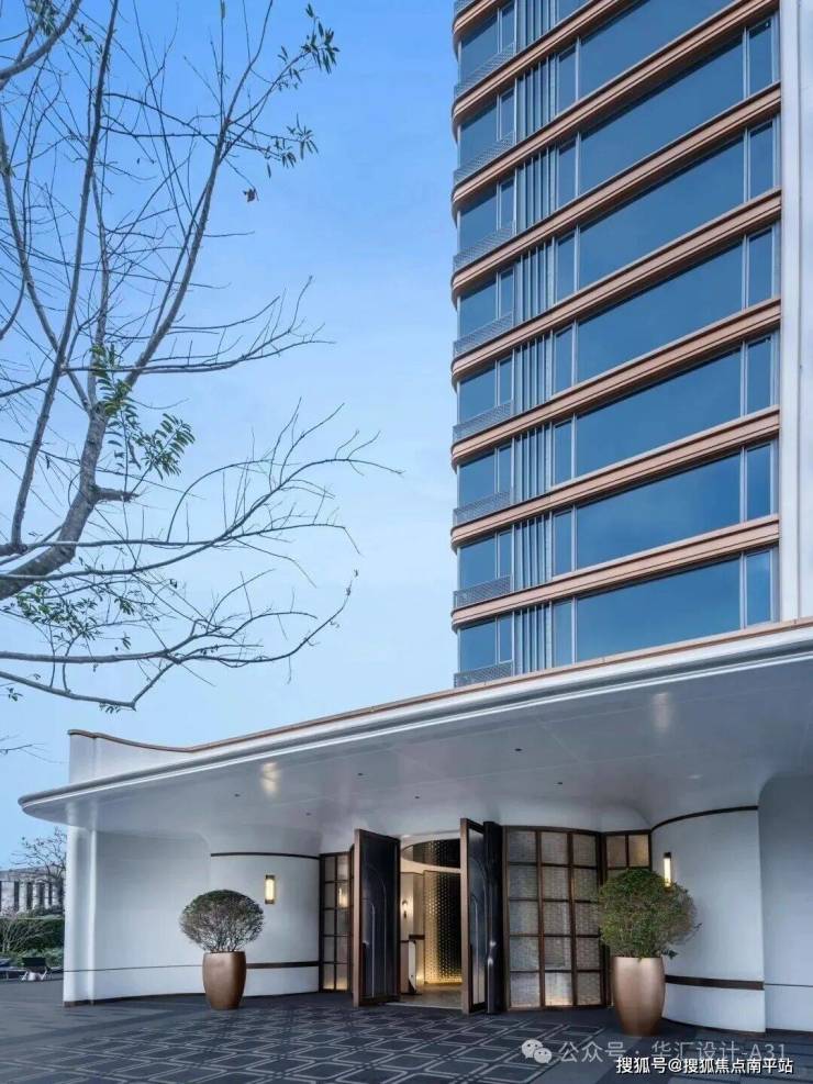 6.6米宽幅玻璃幕墙,最大化采光与观景。底层架空泛会所设计,模糊社区和城市、闽江的边界,社区入口和入户单元大堂打造成海派酒店式入口风格,沿街打造海派摩登街区,营造那种“烟山华灯、沁染闽江”的温情人文场景。楼栋架空层提供互补式场景:静雅书吧 + 私宴厅+茶室+儿童乐园等,强化社区社交属性。