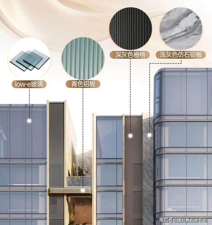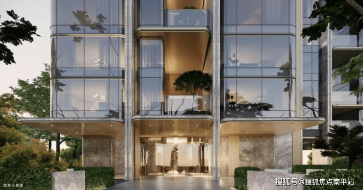 建筑设计由豪宅设计领域的标杆机构gad设计院(绿城设计)操刀。外立面采用LOW-E玻璃+金属线条+金色铝板,阳台采用错层挑空设计。
