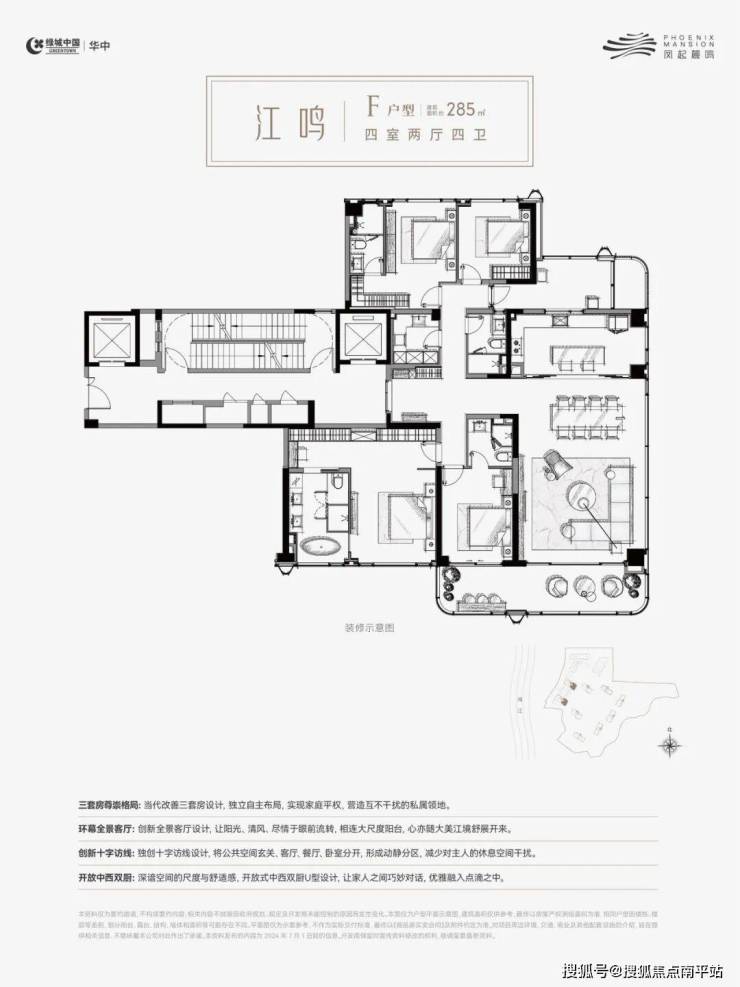 ⭐210㎡四室两厅三卫,400万上车凤起麓鸣绝版户型