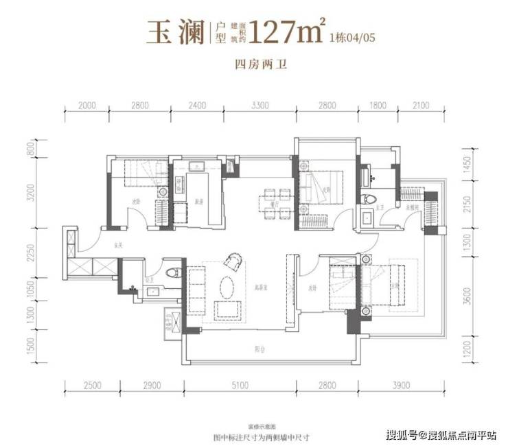 •玉澜·建面约127㎡4房2厅2卫:南向四开间,南北通透,约14.7米IMAX光幕,独立衣帽间