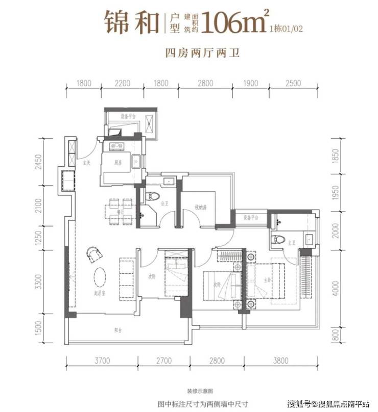 •锦和·约106㎡四房两厅两卫:南向四开间,一线园林景观,自在奢想